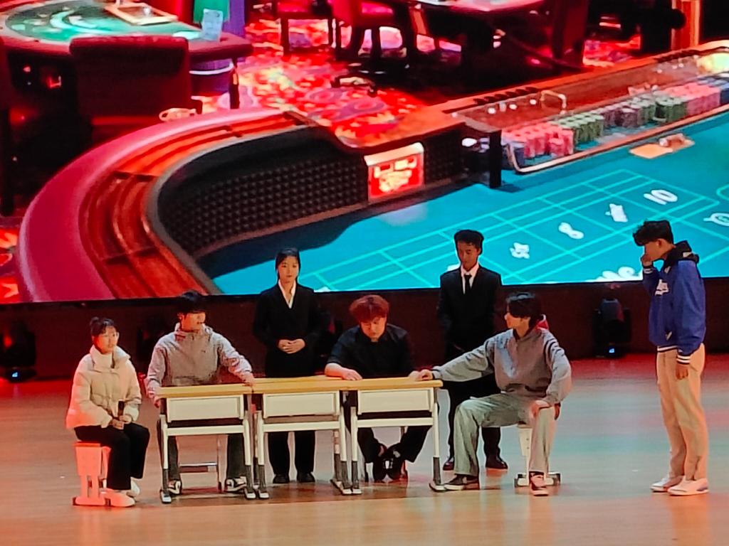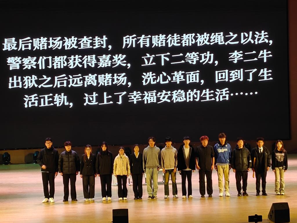 舞台上,化学与生物系参赛团队配合默契,服装贴合角色设定,节奏把控张弛有度。全程紧扣“远离赌博,珍爱生活”的主题,既展现了小品的艺术感染力,更传递了积极正向的价值观,赢得现场评委与观众的掌声。
