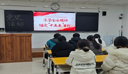 本次专题学习将党史学习与“十五五”规划解读深度融合,引导青年学生从党的百年奋斗历程中汲取智慧,理解“十五五”规划的历史逻辑与时代意义。在专题学习中,师生共同回顾了党领导制定五年规划的光辉历程:从毛泽东同志等老一辈革命家擘画“一五”计划,奠定新中国工业化初步基础;到邓小平同志推动改革开放后,对“六五”至“九五”规划作出战略调整,助力中国经济腾飞;再到新时代习近平总书记亲自谋划、部署“十四五”“十五五”规划,引领中国迈向高质量发展新征程。大家深刻认识到,从“一五”到“十五五”,每一个五年规划都是党团结带领人民攻坚克难、开拓进取的生动实践,正是一代代共产党人的接力奋斗,让中国实现了从站起来、富起来到强起来的伟大飞跃。
