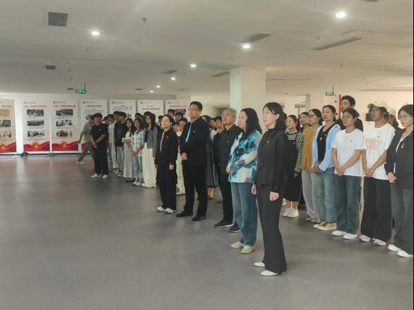 为铭记历史、缅怀先烈,传承伟大抗战精神,激发广大师生的爱国情怀与奋斗热情,9月26日下午,化学与生物系党总支组织党员师生在博观楼1楼观看纪念中国人民抗日战争暨世界反法西斯战争胜利 80 周年图片展。系党总支书记陈桂芳,系主任王金亭,总支其他委员及师生党员参加了本次活动。